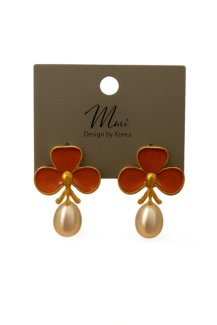 گوشواره اسپرت طرح گل ارکیده نارنجی